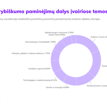 Verslo sektorius, nors ir deklaruoja inovacinius siekius, kūrybiškumą dažniausiai sieja su technologijomis. Temos „Verslas ir inovacijos“ (8,99 proc.) bei „Technologijos ir skaitmenizacija“ (8,13 proc.) rodo aktyvų, tačiau specifinį komunikacinį toną. Čia kūrybiškumas tampa technologinio progreso, o ne žmogiškojo potencialo sinonimu.